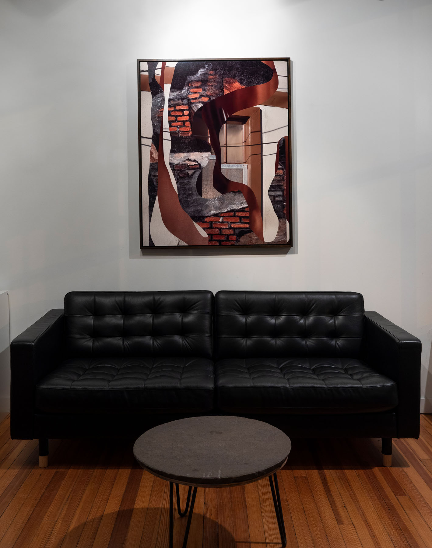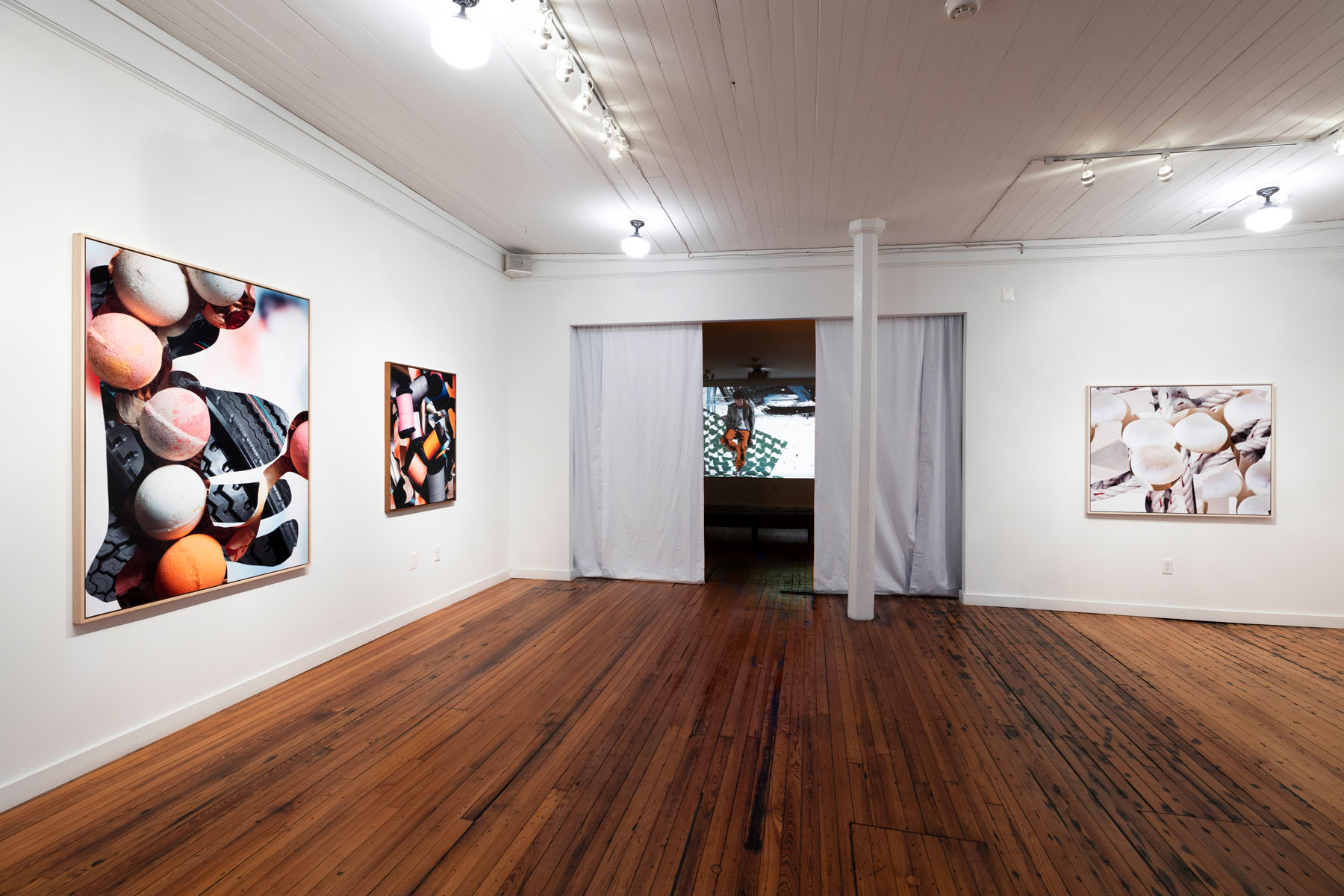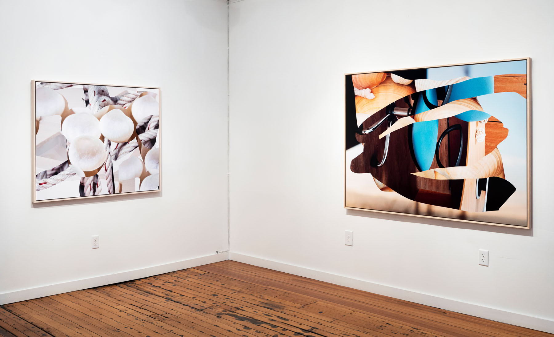 Kate Steciw and Theodore Darst position themselves as digital flâneurs of sorts, playfully strolling through screen environments, making associations freely between images, places, and digital artifacts. Their productions employ sets of divergent yet interrelated skills, each of which fall uniquely within the domain of labor (typically freelance), formerly performed by the artists in varying capacities. Steciw’s series of dye-sublimation prints on aluminum, occupying the front gallery at Liberal Arts, are digital collages composed of images she recruits from varying databases: stock photos, archives, social media accounts, image searches, etc. She considers the mark making that establishes the borders of her collaged layers to be a welcome mediation—the collaborative residue of machine-human interaction. The rear gallery premieres Darst’s diaristic, single-channel video titled Cloud Requital & The-Grift. Here Darst incorporates video footage shot on location with digitally-born, 3D animations accompanied by 2D overlays drawn frame by frame. The video is a futuristic meditation on the artist’s recent trips between New York, his grandfather’s western Massachusetts painting studio, and the Catskills. The seamless looping of the visuals, with audio composed by musician Kevin Carey, mirror the artist’s peregrinations and provide the viewer with an experience that can be taken up or left behind at any moment. Both Darst and Steciw approach digital media as an expansive landscape where attentions seamlessly cascade from one perspective to the next. Their treatments of this landscape explore its construction, prospecting its fissures, its multitude of layered images, the simultaneity of vision, and its “higher ground” in terms of visual language. Theodore Darst (b. 1986, New York City) lives and works in New York City. Cloud Requital & The-Grift is his eighth collaboration with composer and producer Kevin Carey (b. 1992, Boston, MA). Darst’s work has been the subject of solo exhibitions at Lubov, New York; Magenta Plaines, New York; and at Unpainted, Lab 2.0, Munich. His videos have been screened extensively at national and international venues, including TEAM Gallery, New York; The Drawing Center, New York; Mirko, Zurich; The Museum of Contemporary Art, Los Angeles; Museo de Bahia, Salvador, Brazil; The Institute of Contemporary Arts, London; and the Museum of Contemporary Art, Chicago. Kate Steciw (b. 1978, Bethlehem, PA) lives and works in Woodstock, NY. Her works have been the subject of numerous solo exhibitions, including Gamma Galeria, Guadalajara, Mexico; Galerie Christophe Gaillard, Paris; Neumeister Bar-Am, Berlin; Higher Pictures, New York; and Levy.Delval, Brussels. She has participated in group exhibitions at Hauser & Wirth, New York; International Center for Photography, New York; Bodega, Philadelphia; The Yves Klein Archive, Paris; Anat Ebgi, Los Angeles; Pioneer Works, Brooklyn, New York; and MAMO, Marseille, France.